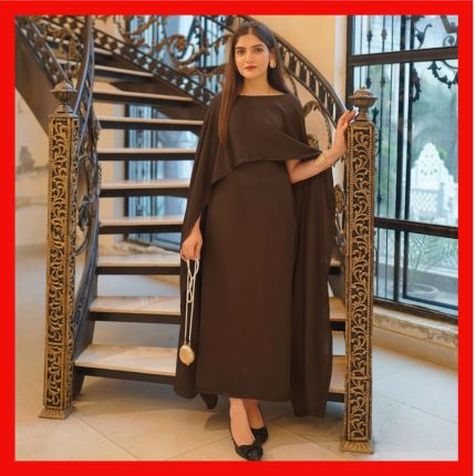 Cap Shawl with long body fitted Maxi 2pcs – Brown