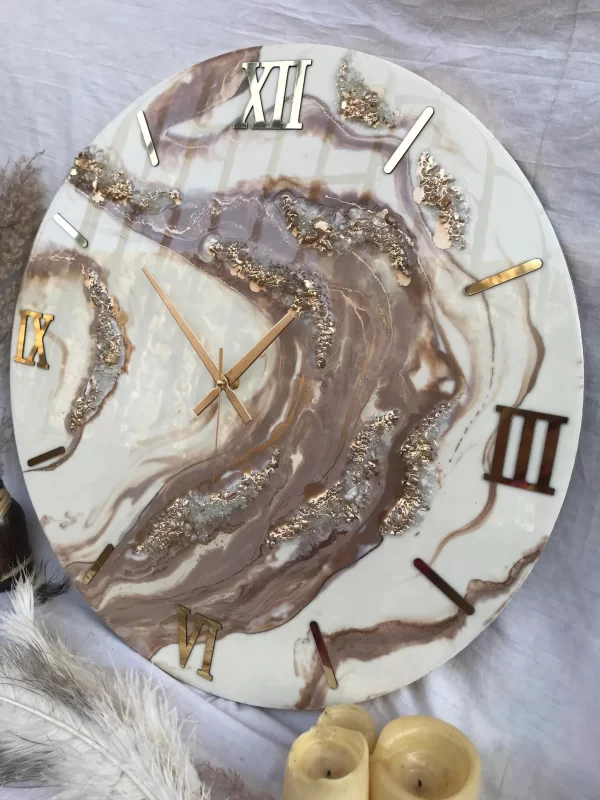 Add a touch of elegance and modernity to your space with this Resin Wall Clock, crafted to be both a functional timepiece and a stunning piece of wall art. The combination of epoxy resin with soothing beige and cream tones creates a refined look that suits a wide range of home and office decor styles. Whether you’re looking for a unique gift or a new statement piece for your interior, this clock brings beauty and function together seamlessly.